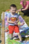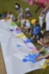 Następnie opiekunka wycisnęła różne kolory farb na ogromnym arkuszu papieru, gdzie dzieci zaczęły stawiać balonowe pieczątki.