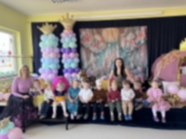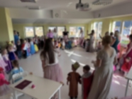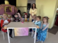 Uroczystość rozpoczęliśmy wspólnym śpiewem i tańcem, następnie Drużyna Królowych i Królów i Drużyna Księżniczek i Książąt wzięli udział w Familiadzie. Po teleturnieju nadszedł czas na pokaz królewskich strojów. Po tej części naszej uroczystości nadszedł czas na odśpiewanie ,,Sto Lat”, urodzinowy tort oraz słodki poczęstunek.